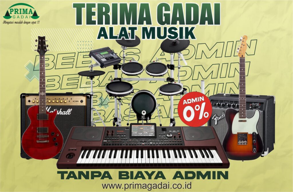 Gadai alat musik bisa dilakukan di Prima Gadai. Prosesnya mirip dengan gadai barang lainnya, di mana Anda memberikan alat musik sebagai jaminan untuk mendapatkan pinjaman tunai. Gadaikan alat musik di Prima Gadai anda bisa mendapatkan harga taksiran yang tnggi tanpa dikena biaya admin dan tanpa potongan jasa diawal.