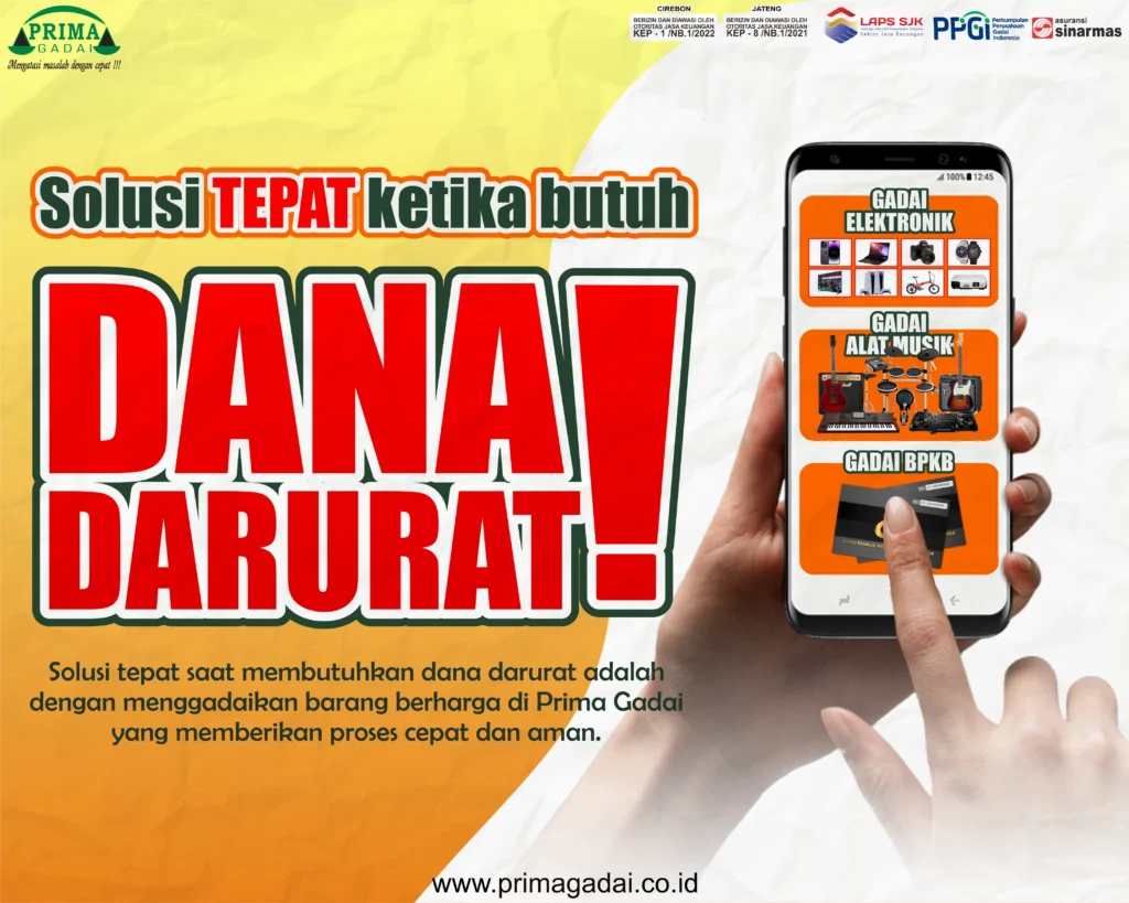 Ketika kebutuhan mendesak datang tanpa diduga, seperti biaya kesehatan, pendidikan, atau keperluan mendadak lainnya, solusi yang cepat dan tepat sangat diperlukan. Salah satu opsi yang dapat diandalkan adalah dengan menggadaikan barang berharga seperti elektronik atau BPKB kendaraan di Prima Gadai. Sebagai lembaga gadai terpercaya, Prima Gadai menawarkan proses yang mudah, cepat, dan transparan. Anda hanya perlu membawa barang yang ingin digadaikan, seperti ponsel, laptop, atau BPKB Motor, untuk dihitung nilai taksiran oleh penaksir masing-masing penaksir di setiap cabang Prima Gadai. Setelah penilaian selesai, dana dapat langsung cair dalam hitungan menit tanpa prosedur yang berbelit.
