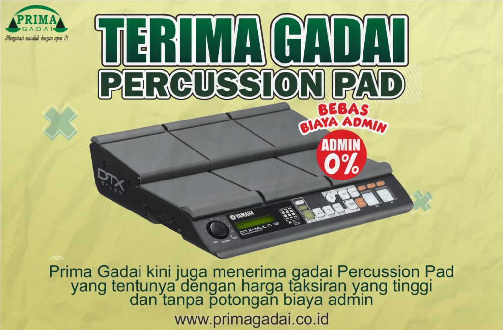Untuk anda yang hobi bermain musik, Selain Keyboard dan Gitar Listrik kini Prima Gadai juga menerima gadai Percussion Pad / Drum Pad. Selain Taksiranya yang tinggi proses pengecekan kondisi unit maupun pengecekan fungsionalnya tidak membutuhkan waktu lama karena memang pengecekanya cukup simpel. Jadi untuk anda yang ingin menggadaikan Percussion pad atau Drum pad tidak membutuhkan waktu yang lama untuk prosesnya.